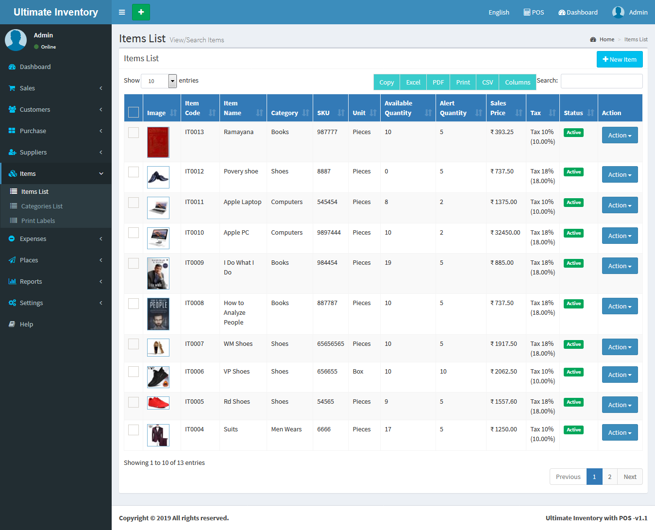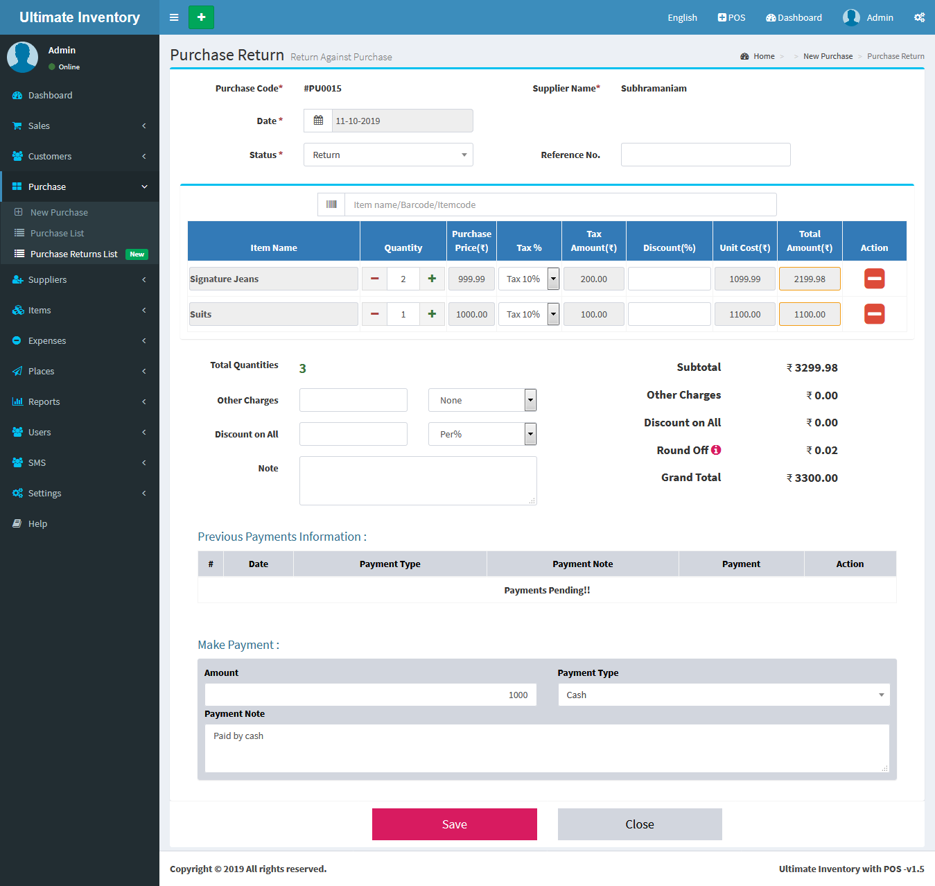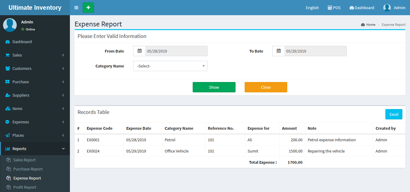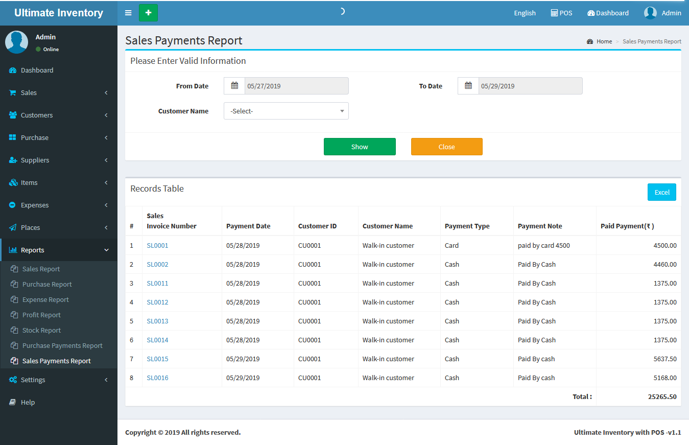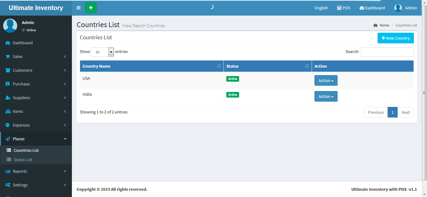 Inventory with POS is a web application software user can track Items & Stock Items, Manage Suppliers, Manage Customers, Items Categories, Sales, Purchase, Manage users and get all the reports which are require to your office and many more features.
