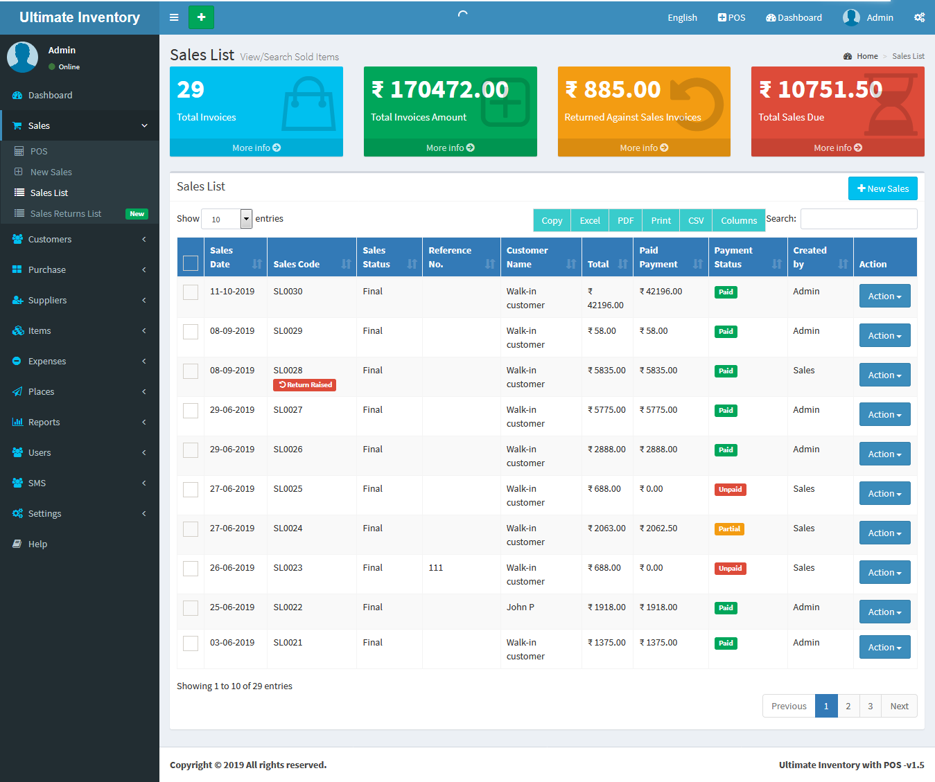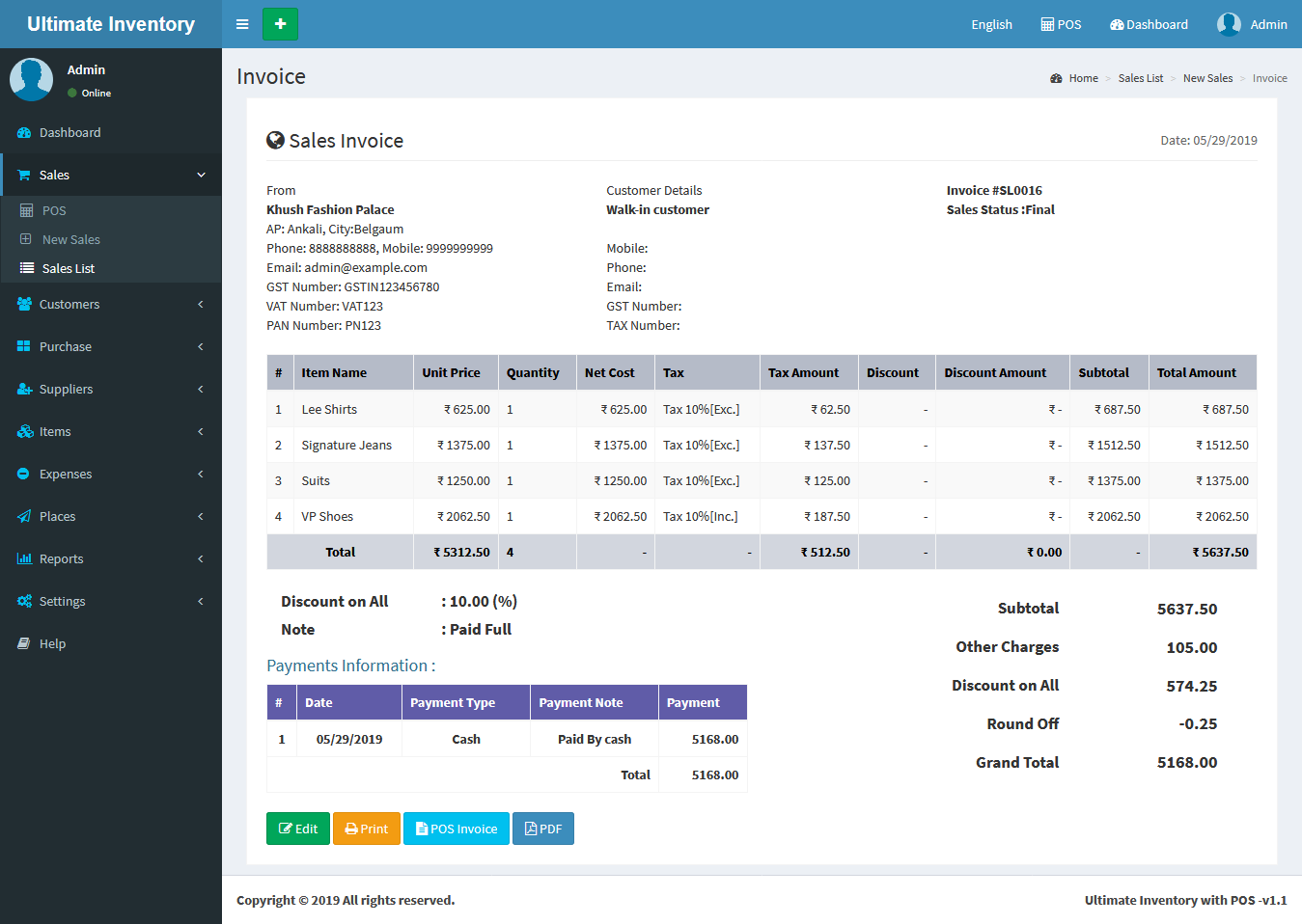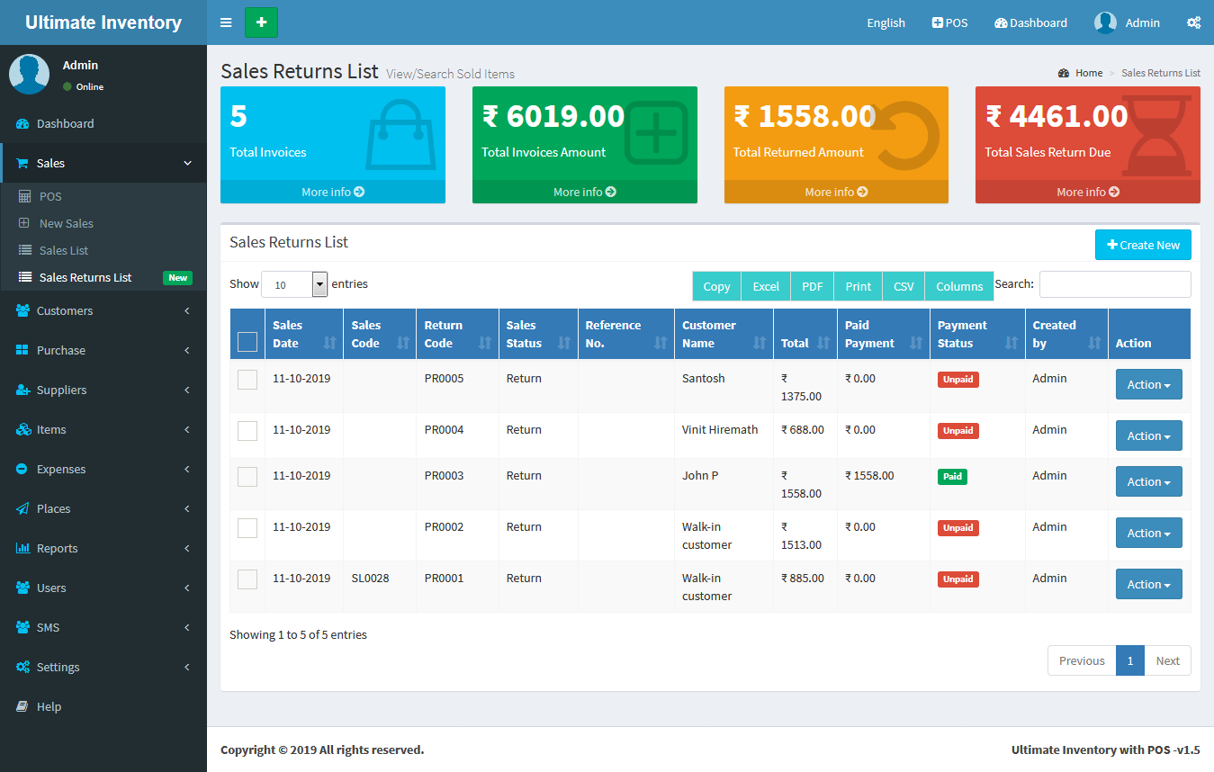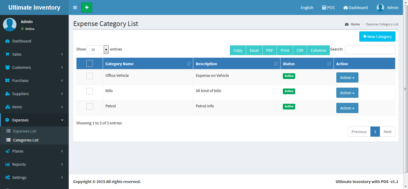 Inventory with POS is a web application software user can track Items & Stock Items, Manage Suppliers, Manage Customers, Items Categories, Sales, Purchase, Manage users and get all the reports which are require to your office and many more features.