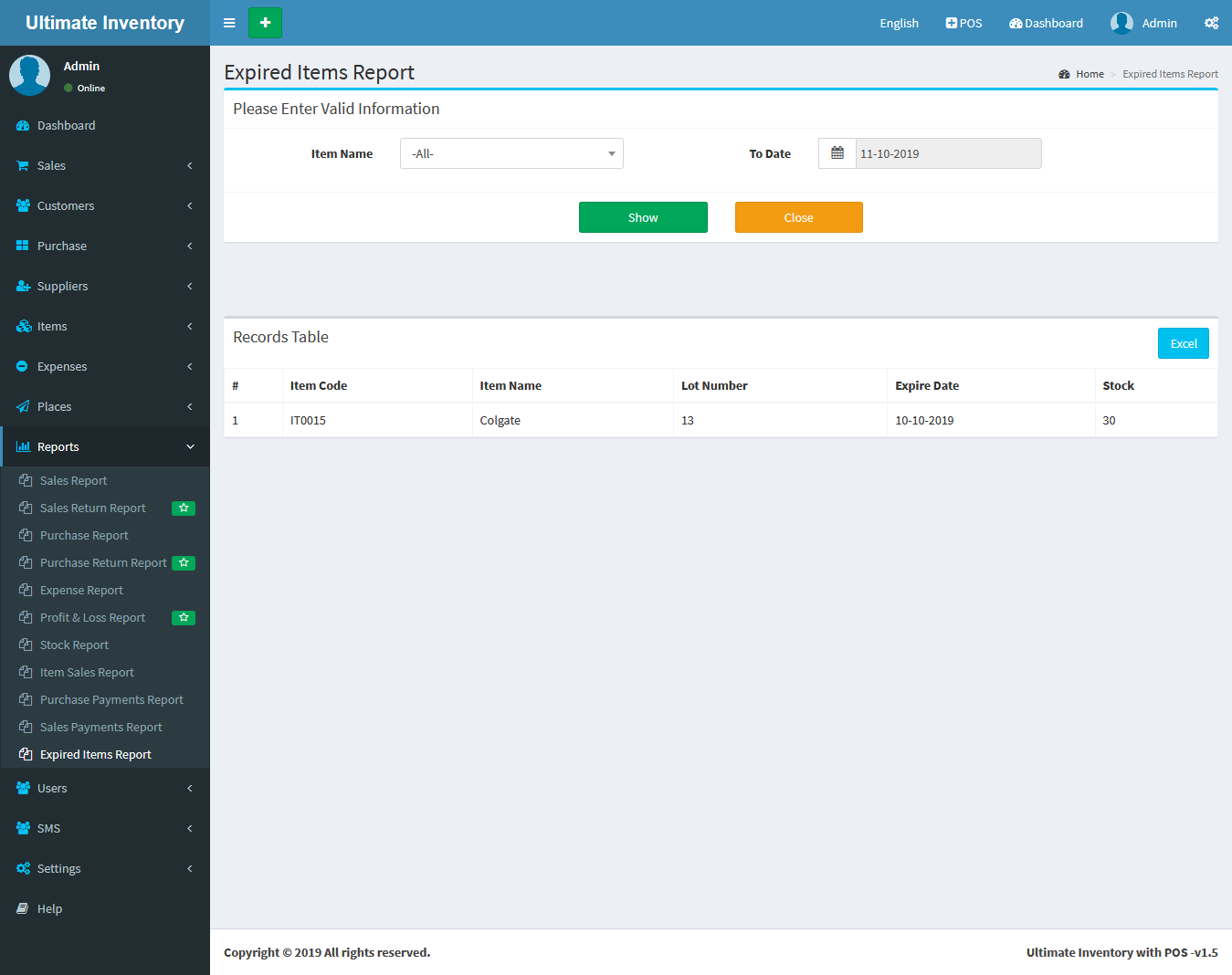 Report: Expired Items Report :