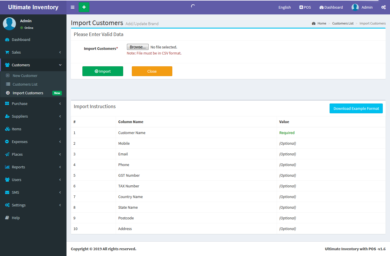 Adding a Customers it's a very easy task. Enter Customer name, Mobile, Phone, Email, GST Number, TAX Number,
