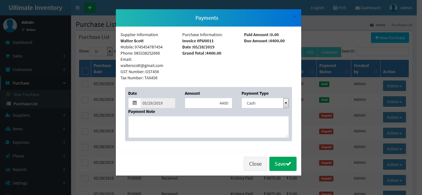 Adding a Suppliers it's a very easy task. Enter Supplier name, Mobile, Phone, Email, GST Number, TAX Number,