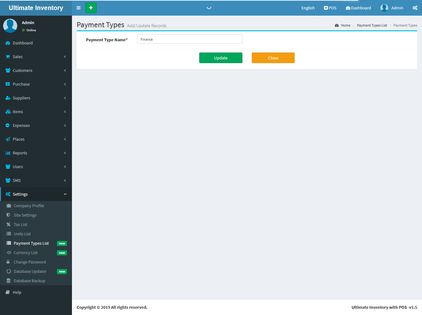 Payment Types Add :