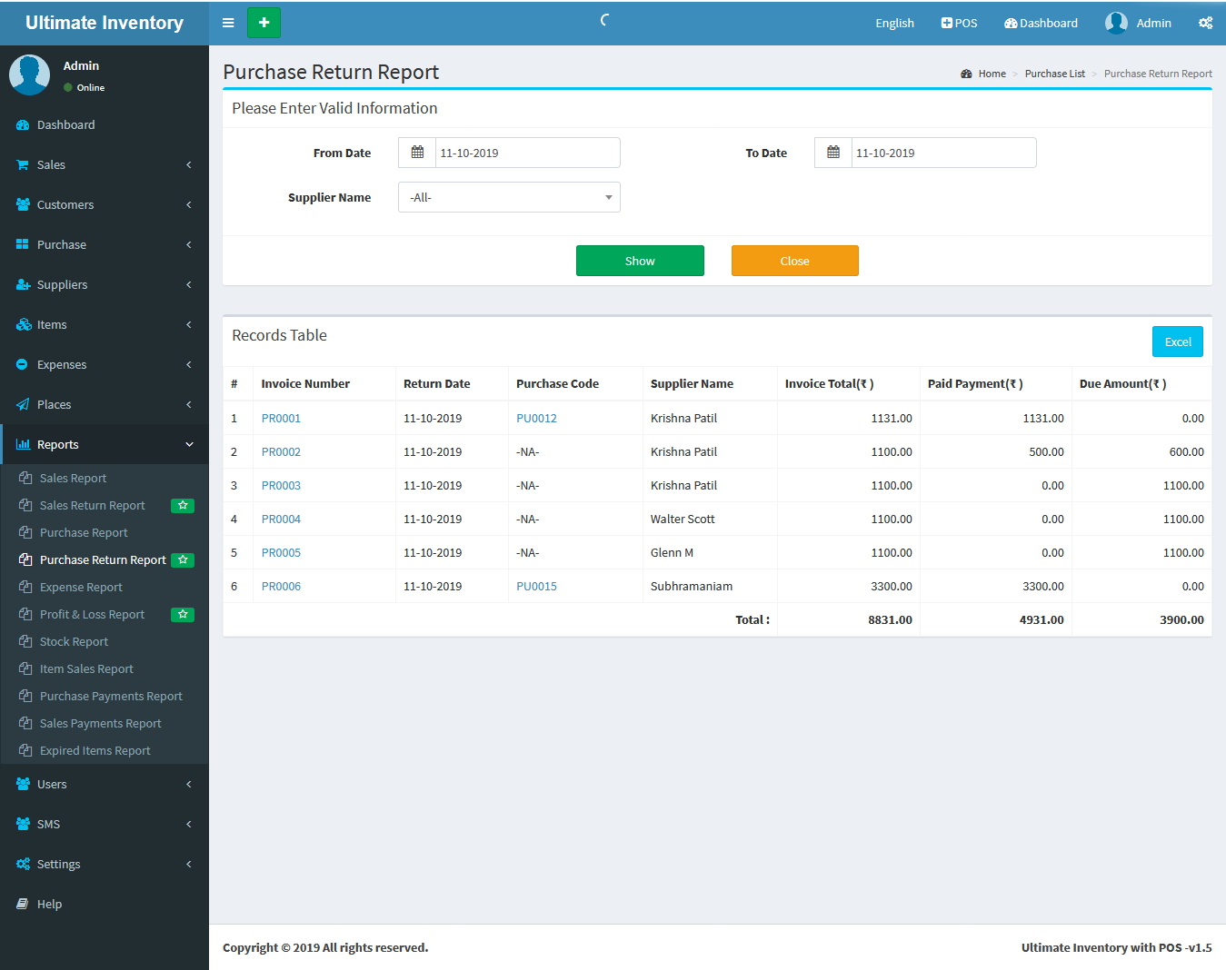 Purchase Return Report: