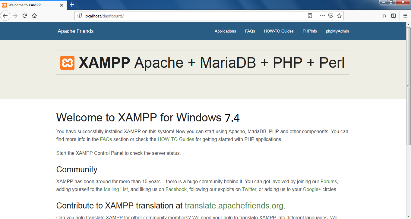 In Windows systems c:/xampp/xampp-control.exe -> Double click -> you will get XAMPP control panel -> find 'Apache' Click on start button -> find MySQL Click on start button. This much server setup is enough, to run application.